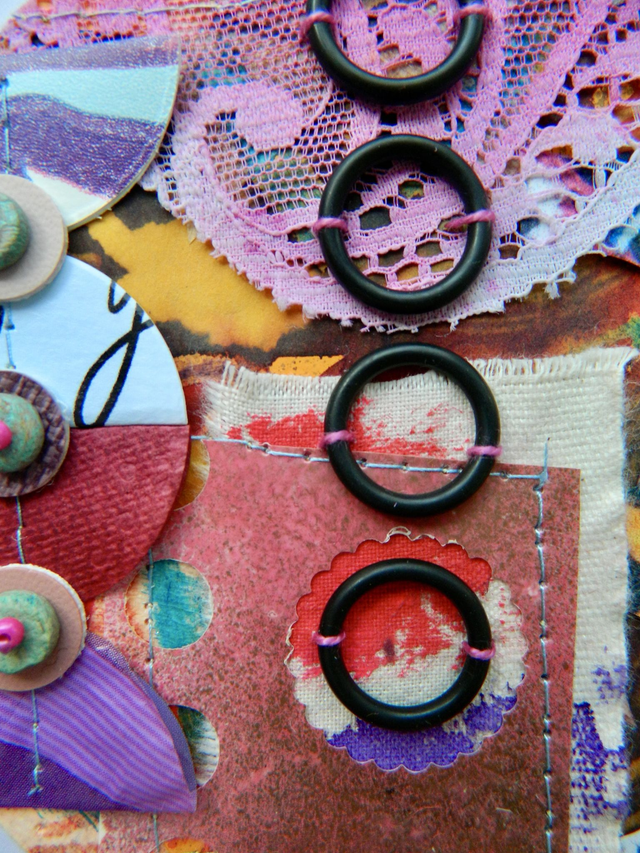 Square Paper + Stitch Collage - Pink/Orange/Black